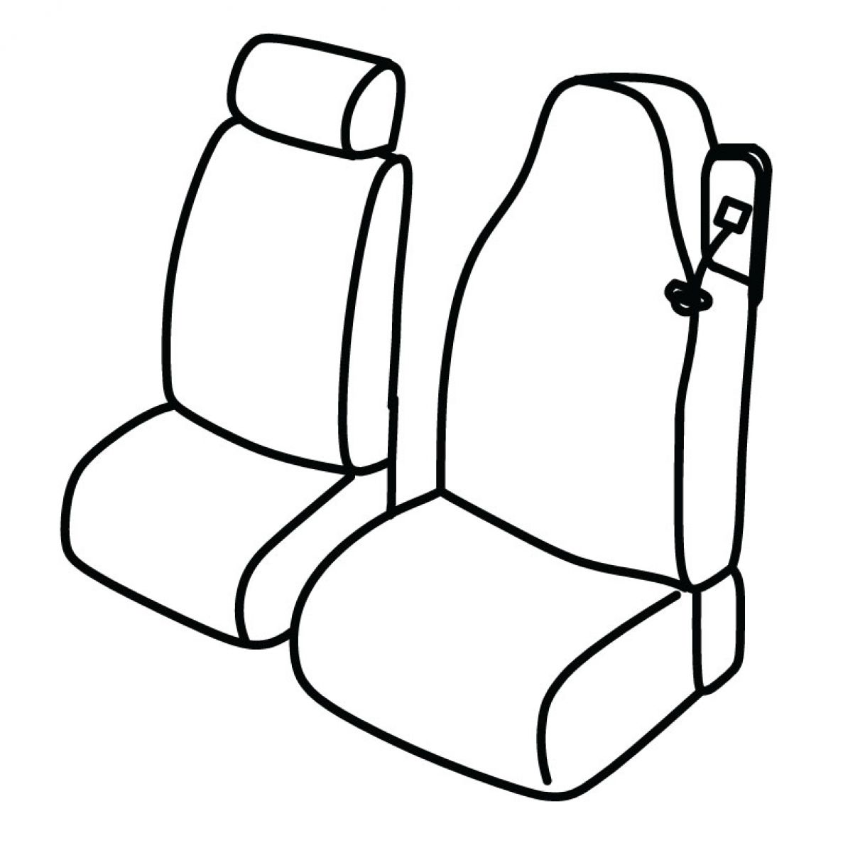 driver seat in one piece with headrest, front passenger seat is normal, driver's seat belt in upper seat, passenger seat belt is not connected to upper seat, bigger seat belt, front passenger headrest is normal