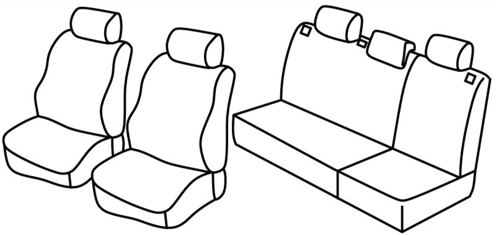 front seats normal, rear upper and bottom seat foldable (2/3 + 1/3), rear headrests 2 normal + 1 lowered, third (middle) seat belt in rear upper seat
