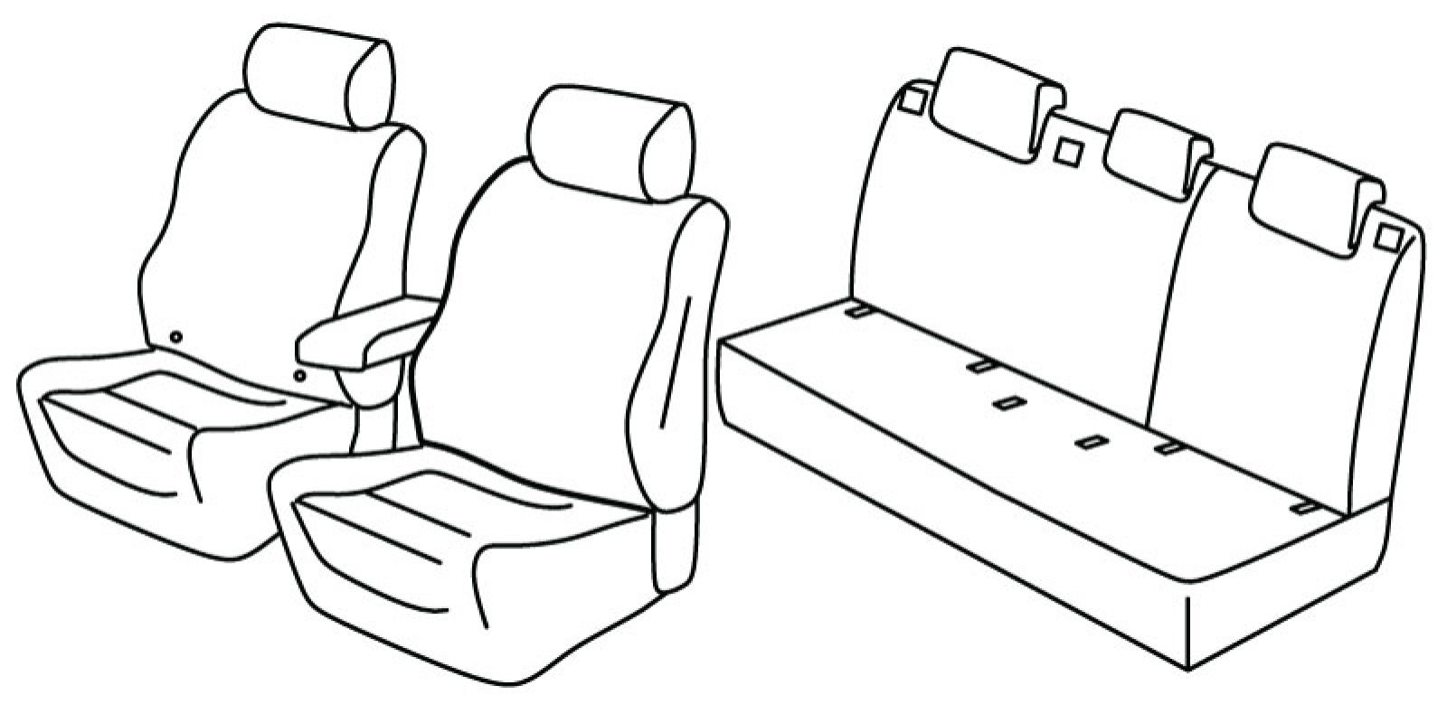 front seats sporty style, isofix on front passanger bottom seat, front headrests cannot be removed, front armrest freestanding (not connected to front seats), 3 airbags (driver seat on both sides, passenger seat on side to the door), isofix connected to seat cover, third (middle) seat belt in rear upper seat, rear upper seat foldable (2/3 + 1/3), rear bottom seat in one piece (1/1), rear headrests are lowered (2+1)