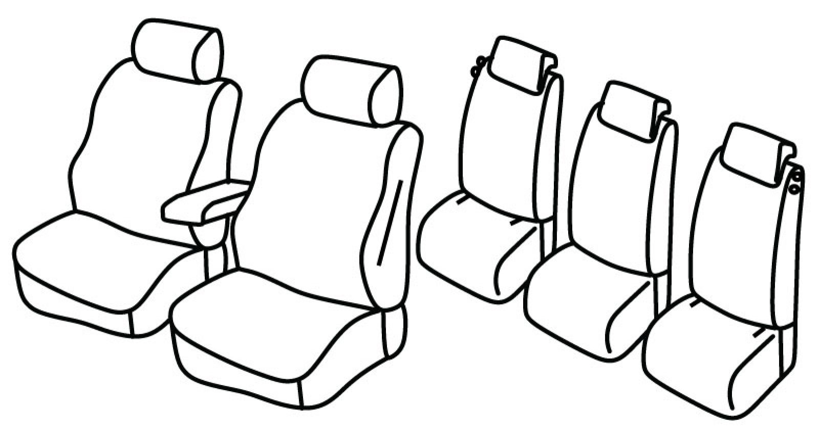 front armrest freestanding (not connected to front seats), 3 separate rear seats, rear middle seat has plastic backside, airbag, lumbar support adjustment on front upper seats ,2 handles for folding rear side upper seat, isofix connected to seat cover