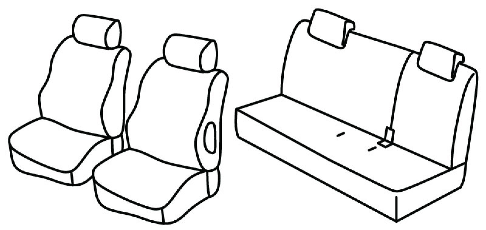 front seats normal, front seats have plastic backside covered by seat cover, plastic airbag, rear upper seat foldable (2/3 + 1/3), rear bottom seat in one piece (1/1), rear headrests are lowered