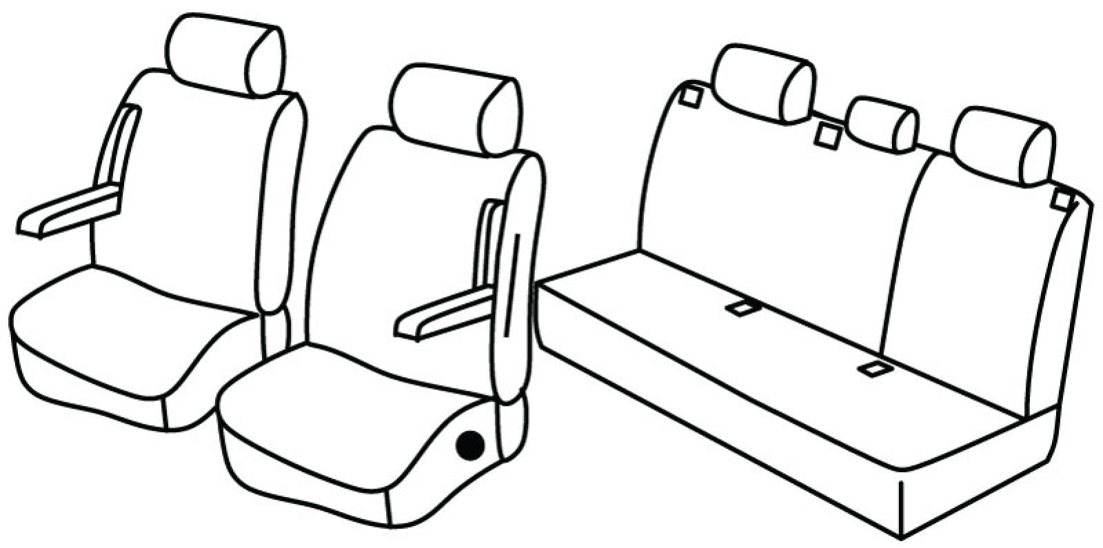 2 front armrest connected to driver seat (not possible to use them when cover is on), rear upper seat foldable (2/3 + 1/3), rear bottom seat in one piece (1/1), airbag, third (middle) seat belt in rear upper seat