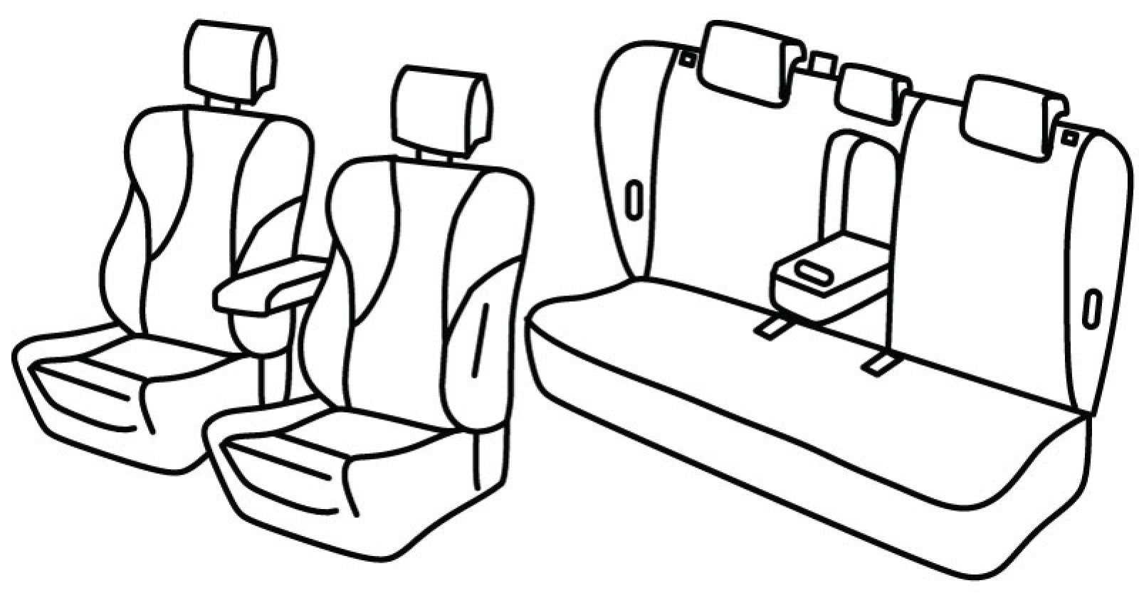 front seats recaro (sport style), front armrest freestanding (not connected to front seats), airbag, rear upper seat foldable (2/3 + 1/3), rear armrests integrated in rear upper seat, rear bottom seat in one piece (1/1), holes on rear poles, rear seat has isofix but unusable when seat is covered, rear headrests are lowered (2+1), handle on the rear upper seat