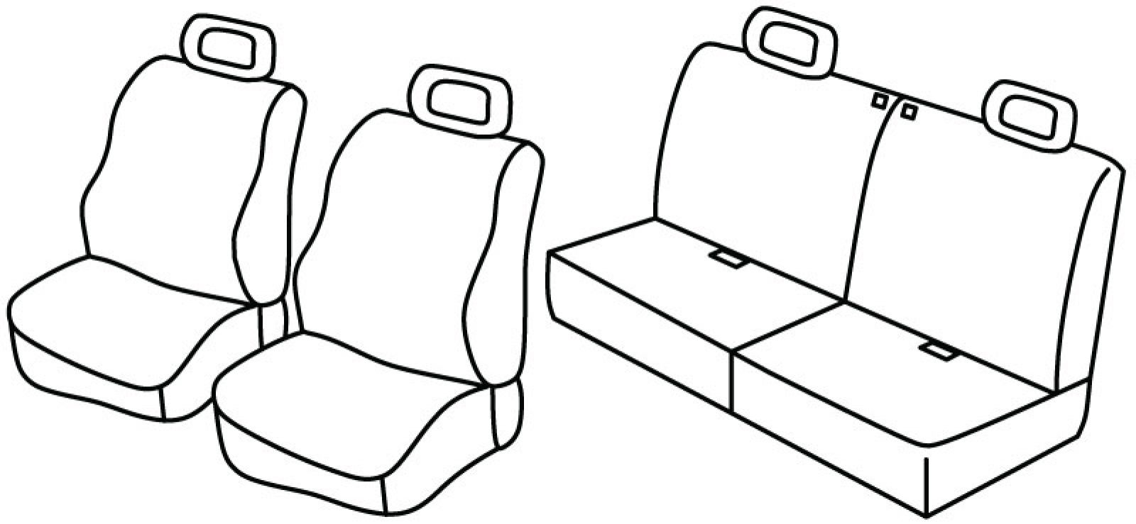 front seats normal, all headrests are hollow but fully covered by seat cover, rear upper and bottom seat foldable (1/2 + 1/2)