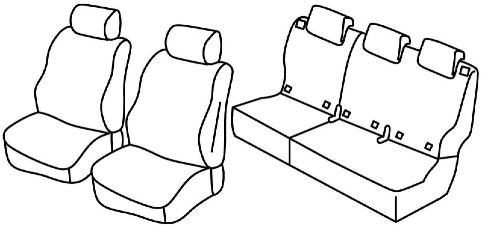 front seats normal, airbag, front headrests are normal, rear upper and bottom seat foldable (1/3 + 2/3), isofix connected to seat cover, rear headrests are lowered