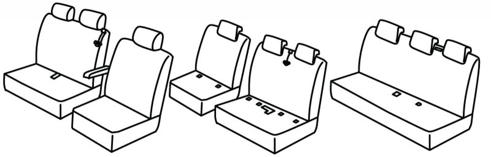 1st row: 1+2, airbag, front armrest connected to driver seat, front passenger seat belt in upper seat, front headrests are different sizes, 2nd row: rear headrests are lowered, seat belt in middle of double upper seat, isofix connected to seat cover, 3rd row:rear upper and bottom seat in one piece, third (middle) seat belt in rear upper seat