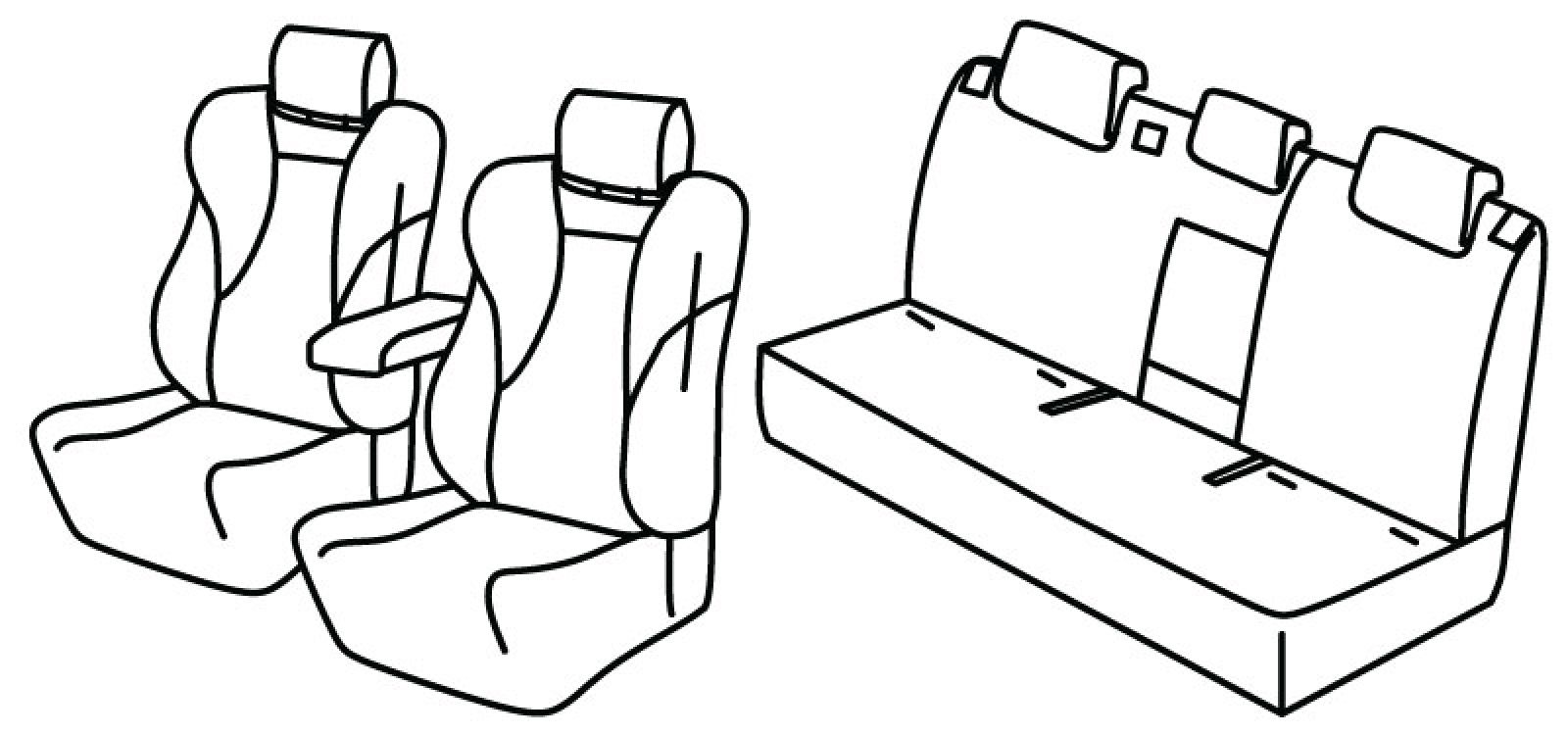 front seats sporty style, front armrest freestanding (not connected to front seats), front headrests are normal, 4 airbag (on the inside and outside of the front upper seats), rear upper seat foldable (2/3 + 1/3), rear bottom seat in one piece (1/1), isofix connected to seat cover, rear armrest, in rear armrest integrated cup holder (square shape), third (middle) seat belt in rear upper seat