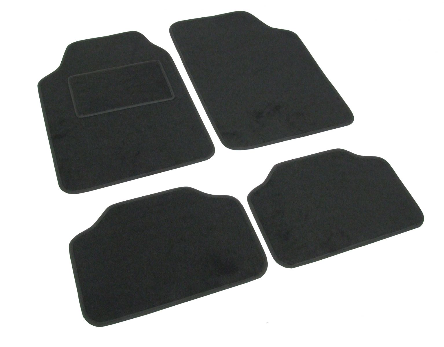 Universal textile mats, set 4 pieces. Polypropylene/polyester higher quality. Textile heelpad on driver mat, textile binding, multiple color options.
