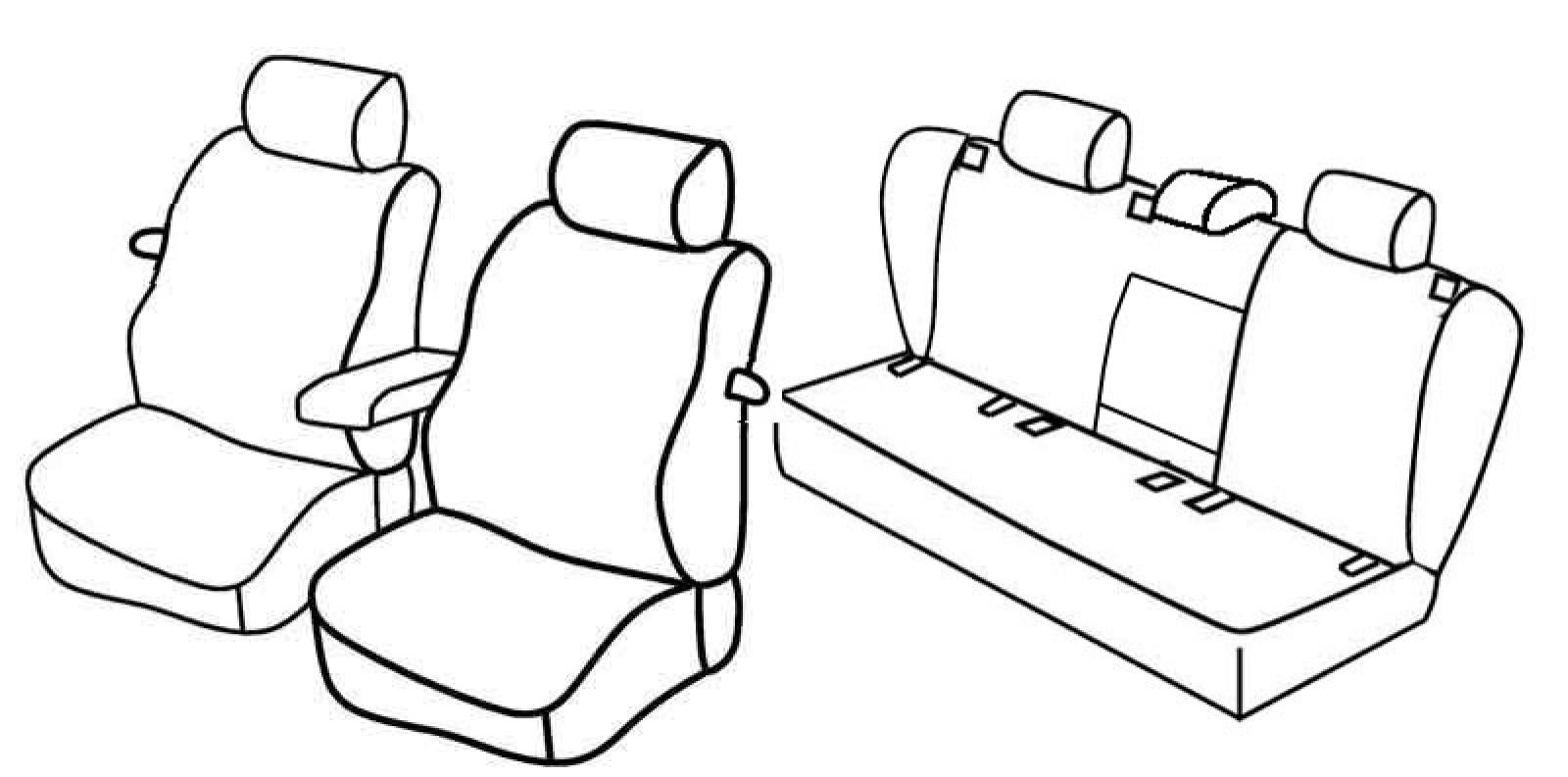 front seats normal, rear upper seat foldable (2/3 + 1/3), front armrest, rear poles on sides optional, isofix, rear armrest,rear headrests 2 normal + 1 lowered