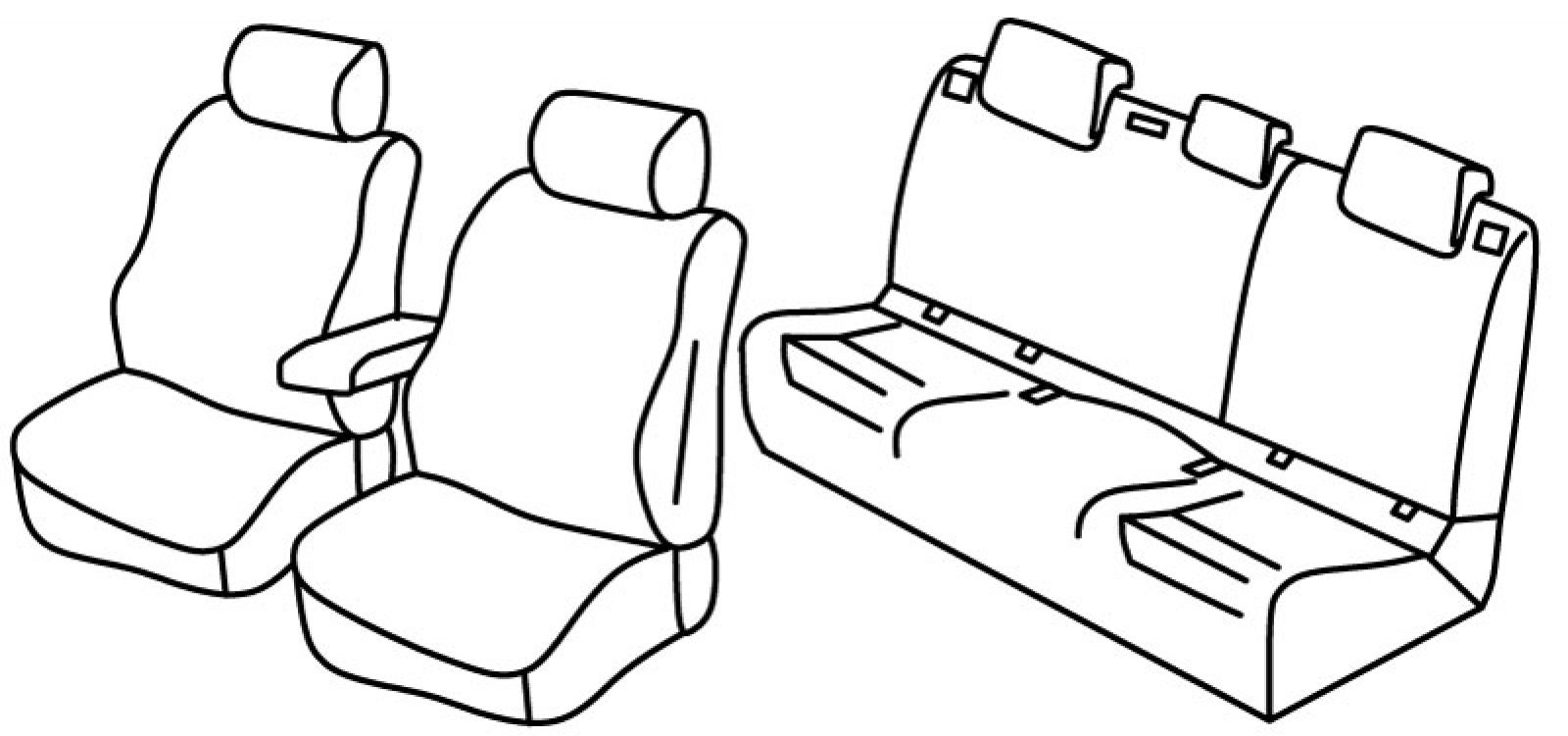 front seats normal, airbag, front headrests are normal, front armrest freestanding (not connected to front seats), rear upper seat foldable (2/3 + 1/3), rear bottom seat in one piece (1/1), isofix connected to seat cover, third (middle) seat belt in rear upper seat, rear headrests are lowered (2+1)