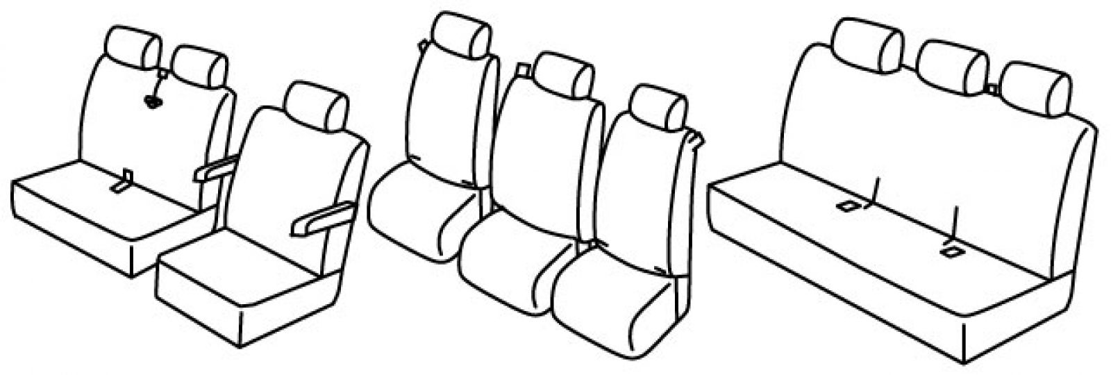 3 seat rows, 1st row: 1+2, driver seat is normal, 2 front armrest connected to driver seat, upper and bottom double seat in one piece, seat belt in middle of upper front passenger seat, 2nd row: 3 separate rear seats, handles for folding upper seat in 2nd seat row, isofix connected to seat cover, 3rd row: rear upper and bottom seat in one piece (1/1), third (middle) seat belt in rear upper sea