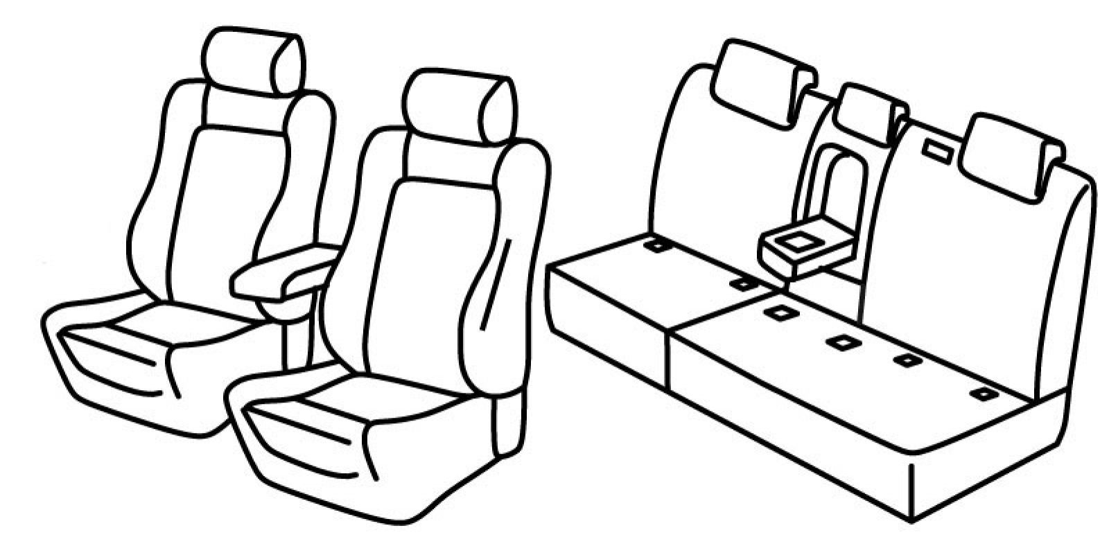 front headrests cannot be removed, front seats have plastic foldable tables on backside, front passenger upper seat not foldable into table for driver, airbag, isofix, front armrest, rear armrest, third (middle) seat belt in rear upper seat, rear upper and bottom seat foldable (1/3 + 2/3)