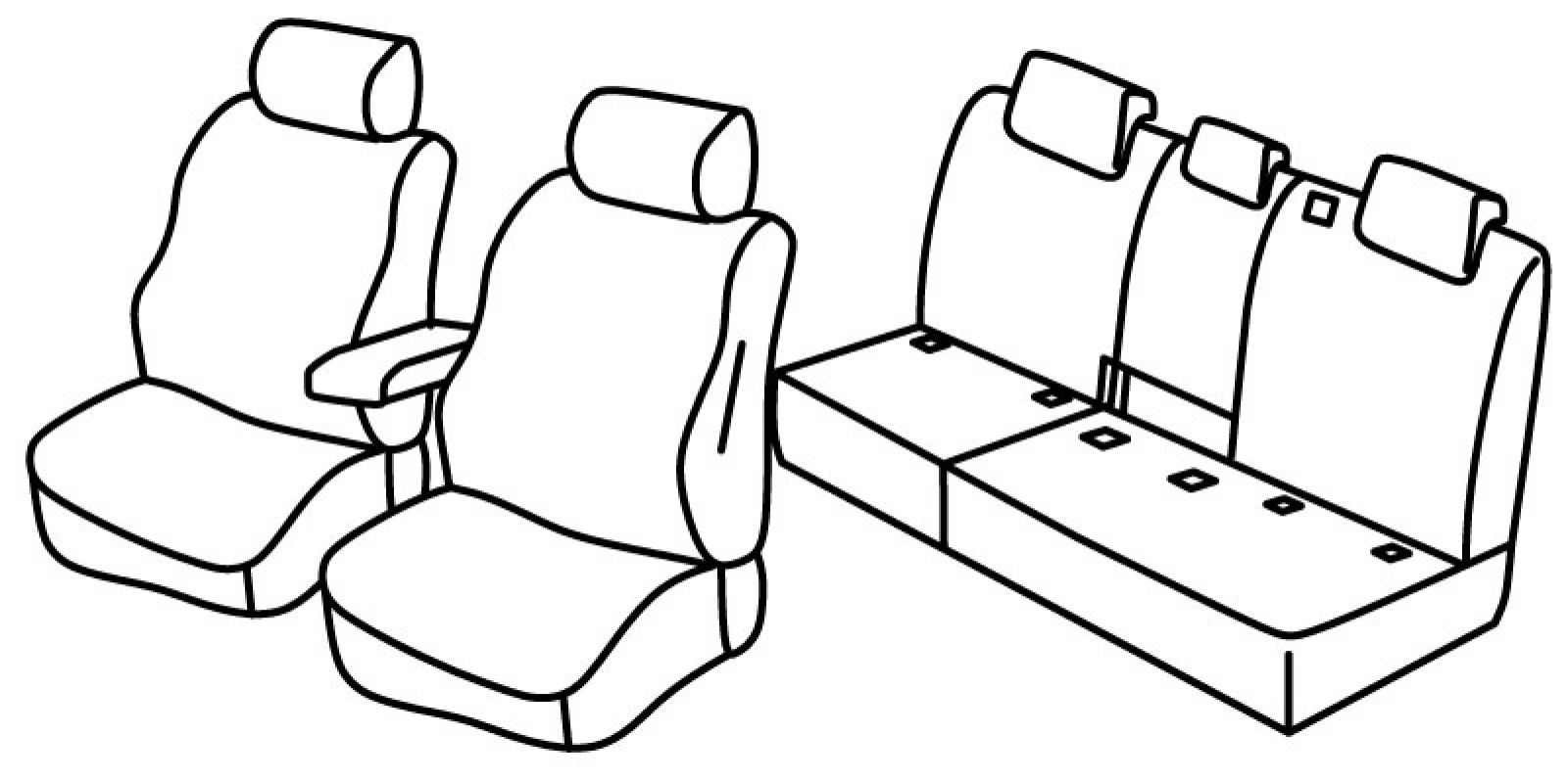front seats normal, front headrests cannot be removed, front seats have plastic foldable tables on backside, airbag, isofix, front armrest, third (middle) seat belt in rear upper seat, rear upper seat foldable (1/3 + 1/3 +1/3), rear bottom seat foldable (1/3 + 2/3)