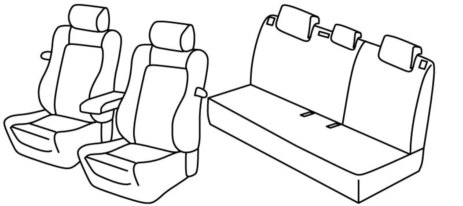 prednja sjedala sportska, airbag, ručice za preklapanje naslona, prednji nasloni za glavu su normalni, prednji naslon ruke konzolni (nije vezan za naslon sjedala), stražnji naslon djeljiv 2/3+1/3, stražnje sjedalo u komadu, treći (srednji) pojas izlazi iz naslona, isofix povezan s presvlakom, stražnji nasloni za glavu su utopni (2+1)