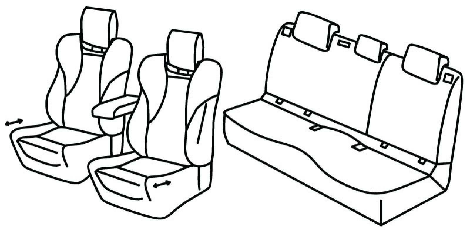 prednja sjedala sportska, prednji naslon ruke konzolni (nije vezan za naslon sjedala), prednji nasloni za glavu su aktivni, poleđina prednjih naslona od plastike koja se prekriva presvlakom, 3 airbaga (sa vanjske strane prednjih naslona i na vozačevom naslonu sa unutarnje strane), stražnji naslon djeljiv 2/3+1/3, stražnje sjedalo u komadu, treći (srednji) pojas izlazi iz naslona, isofix povezan s presvlakom, stražnji nasloni za glavu su utopni (2+1)