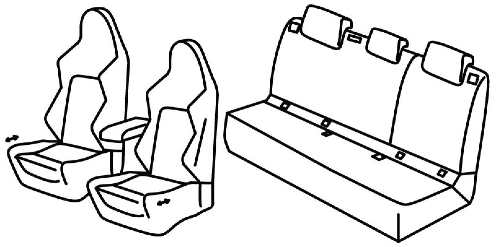 pprednja sjedala avionska, prednja sjedala imaju izvlačni dio ali se presvlaka može postaviti samo na potpuno uvučena sjedala, prednji naslon ruke konzolni (nije vezan za naslon sjedala), poleđina prednjih naslona od plastike koja se prekriva presvlakom, 3 airbaga (sa vanjske strane prednjih naslona i na vozačevom naslonu sa unutarnje strane), stražnji naslon djeljiv 2/3+1/3, stražnje sjedalo u komadu, treći (srednji) pojas izlazi iz naslona, isofix, stražnji nasloni za glavu su utopni (2+1)