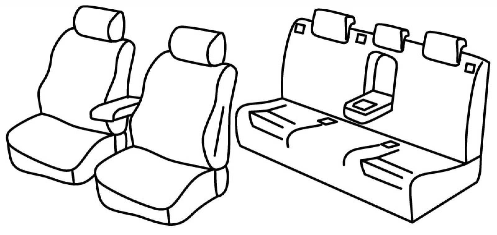 prednja sjedala obična, airbag, prednji naslon ruke konzolni (nije vezan za naslon sjedala), prednji nasloni za glavu su normalni, stražnji naslon i sjedalo u komadu, stražnji naslon ruke, u stražnjem naslonu za ruku integrirani držač za čaše (kvadratni), treći (srednji) pojas izlazi iz naslona, stražnji nasloni za glavu su utopni (2+1)