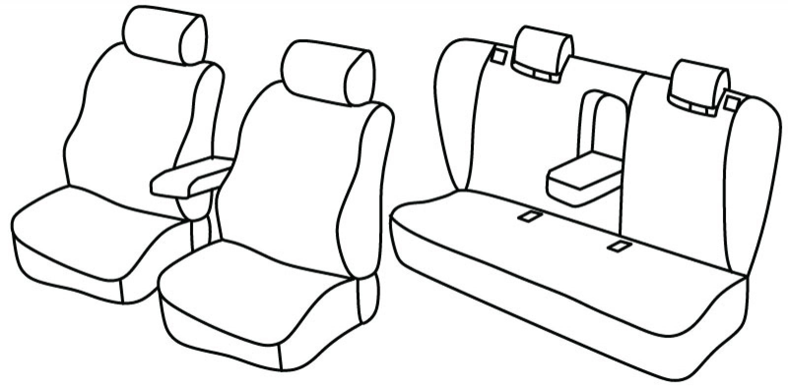 prednja sjedala obična, prednji naslon ruke konzolni (nije vezan za naslon sjedala),stražnji naslon ruke, stražnji nasloni za glavu ulaze u naslon sjedala, stražnji naslon djeljiv 2/3+1/3, stražnje sjedalo u komadu, bočni stupići