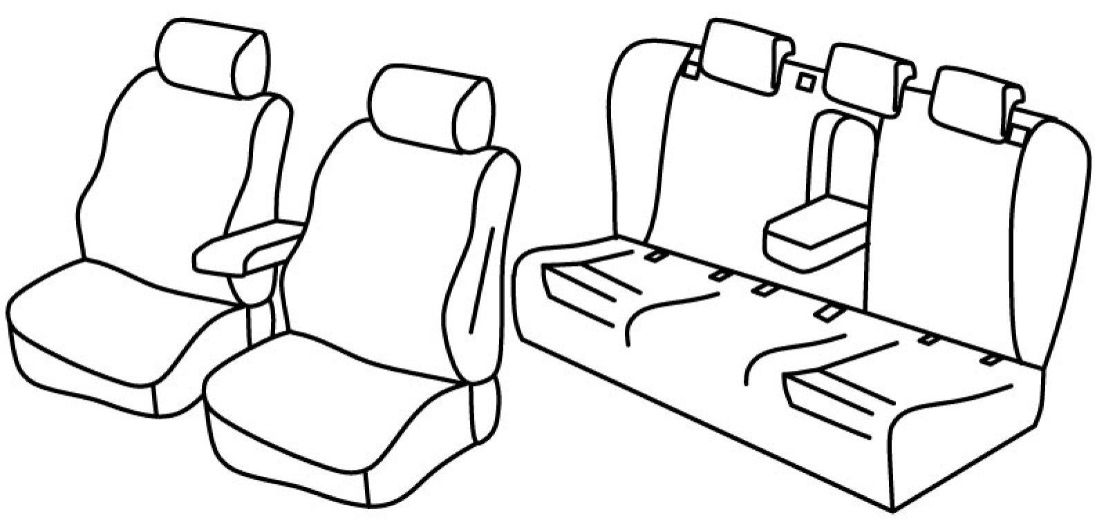 prednja sjedala obična, airbag, prednji nasloni za glavu su aktivni, prednji naslon ruke konzolni (nije vezan za naslon sjedala), stražnje sjedalo u komadu, stražnji naslon djeljiv 2/3+1/3, stražnji naslon ruke, bočni stupići, isofix povezan s presvlakom, treći (srednji) pojas izlazi iz naslona, stražnji nasloni za glavu su utopni (2+1), poleđina prednjih naslona od plastike koja se prekriva presvlakom, nema otvor za skije na poleđini stražnjih naslona