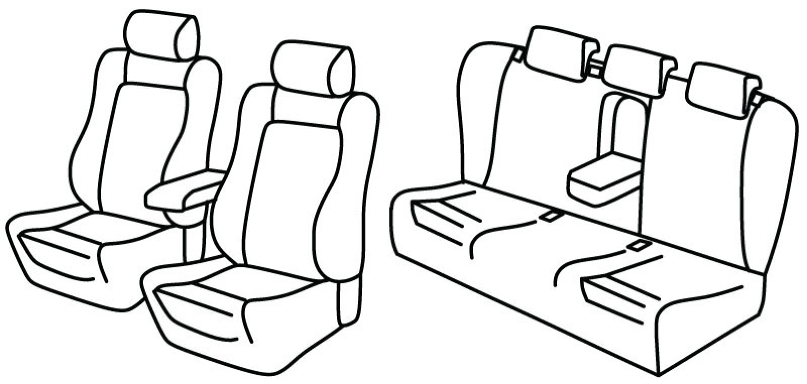 prednja sjedala sportska, prednji nasloni za glavu su aktivni, prednji naslon ruke konzolni (nije vezan za naslon sjedala), stražnji naslon djeljiv 2/3+1/3, stražnje sjedalo u komadu, bočni stupići, stražnji nasloni za glavu su utopni, stražnji naslon ruke, treći (srednji) pojas izlazi iz naslona, ručice za preklapanje naslona u 2 redu