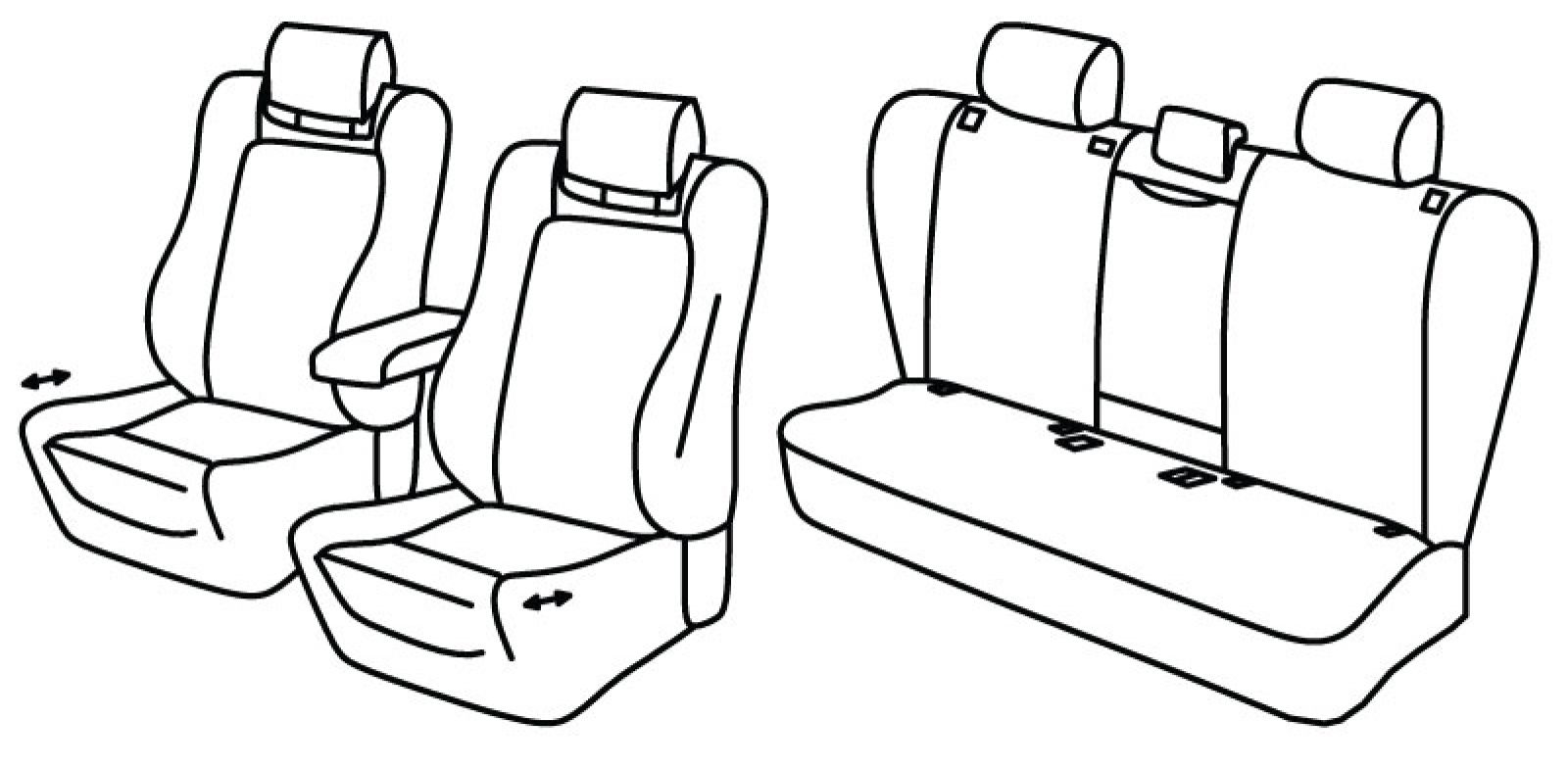 prednja sjedala ergonomska, prednji nasloni za glavu su aktivni, prednji naslon ruke konzolni (nije vezan za naslon sjedala), 3 airbaga (sa vanjske strane prednjih naslona i na vozačevom naslonu sa unutarnje strane), prednja sjedala imaju izvlačni dio ali se presvlaka može postaviti samo na potpuno uvučena sjedala, stražnji naslon djeljiv 1/3+1/3+1/3, stražnje sjedalo u komadu, stražnji naslon ruke, bočni stupići, isofix, treći (srednji) pojas izlazi iz naslona