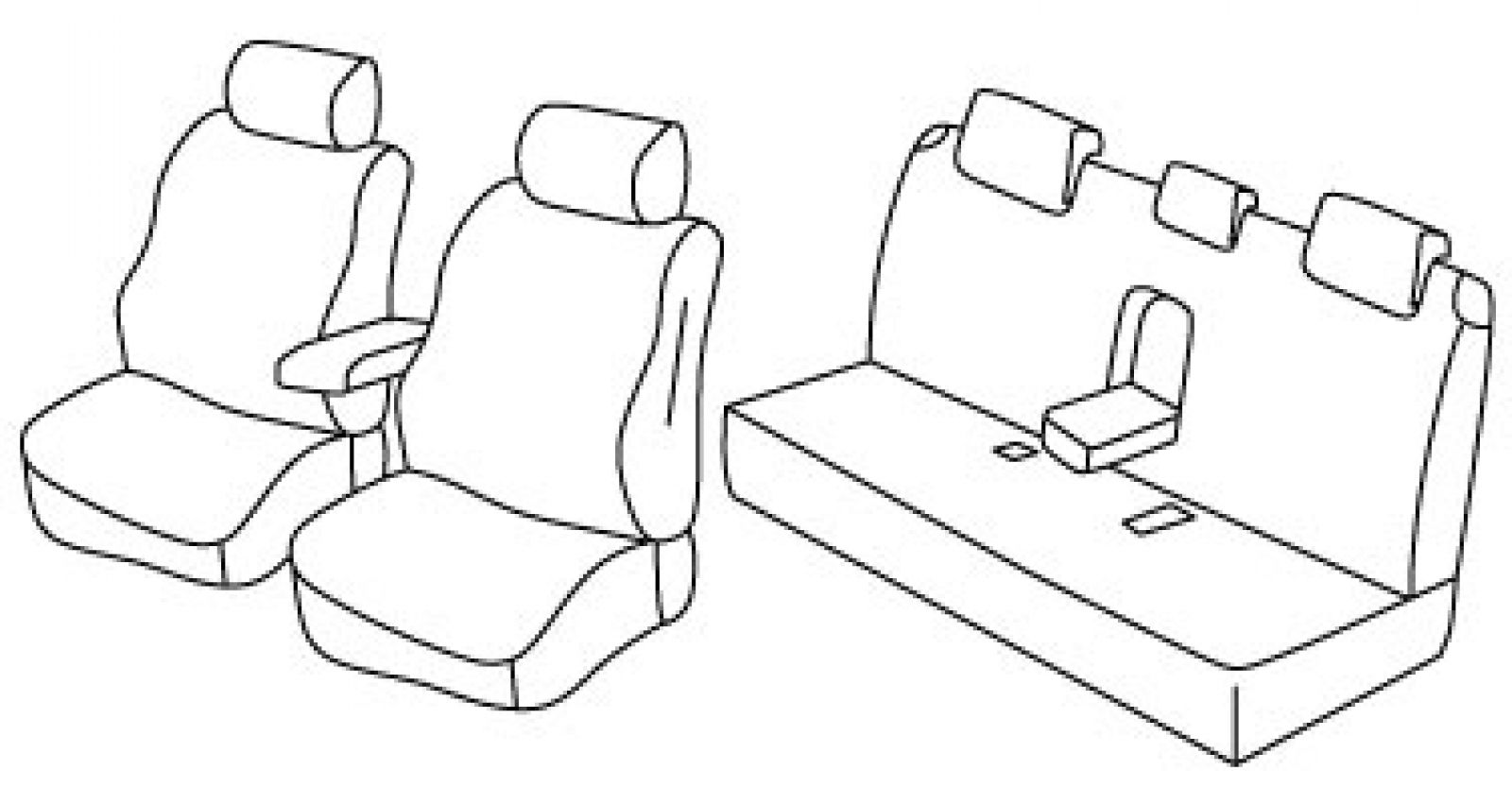 prednja sjedala obična, prednji naslon ruke konzolni (nije vezan za naslon sjedala), stražnji naslon i sjedalo u komadu, stražnji naslon ruke, stražnji nasloni za glavu 2 normalna + 1 srednji utopni