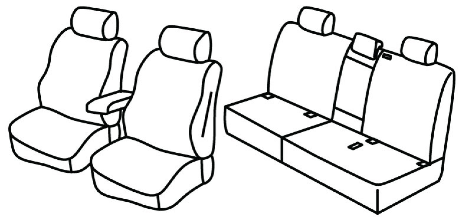 prednja sjedala obična, airbag, poleđina prednjih naslona od plastike koja se prekriva presvlakom, prednji nasloni za glavu su aktivni, prednji naslon ruke konzolni (nije vezan za naslon sjedala), isofix povezan s presvlakom, stražnji naslon djeljiv 1/3+1/3+1/3, stražnji naslon ruke, stražnje sjedalo djeljivo 1/3+2/3, treći (srednji) pojas izlazi iz naslona, stražnji nasloni za glavu 2 normalna + 1 srednji utopni