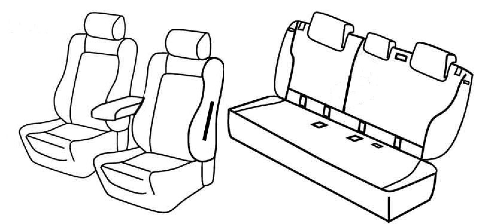 prednji naslon ruke, isofix, bočni stupići, poleđina prednjih naslona od plastike, stražnji naslon djeljiv 1/3+2/3, airbag, treći (srednji) pojas izlazi iz naslona, stražnje sjedalo u komadu