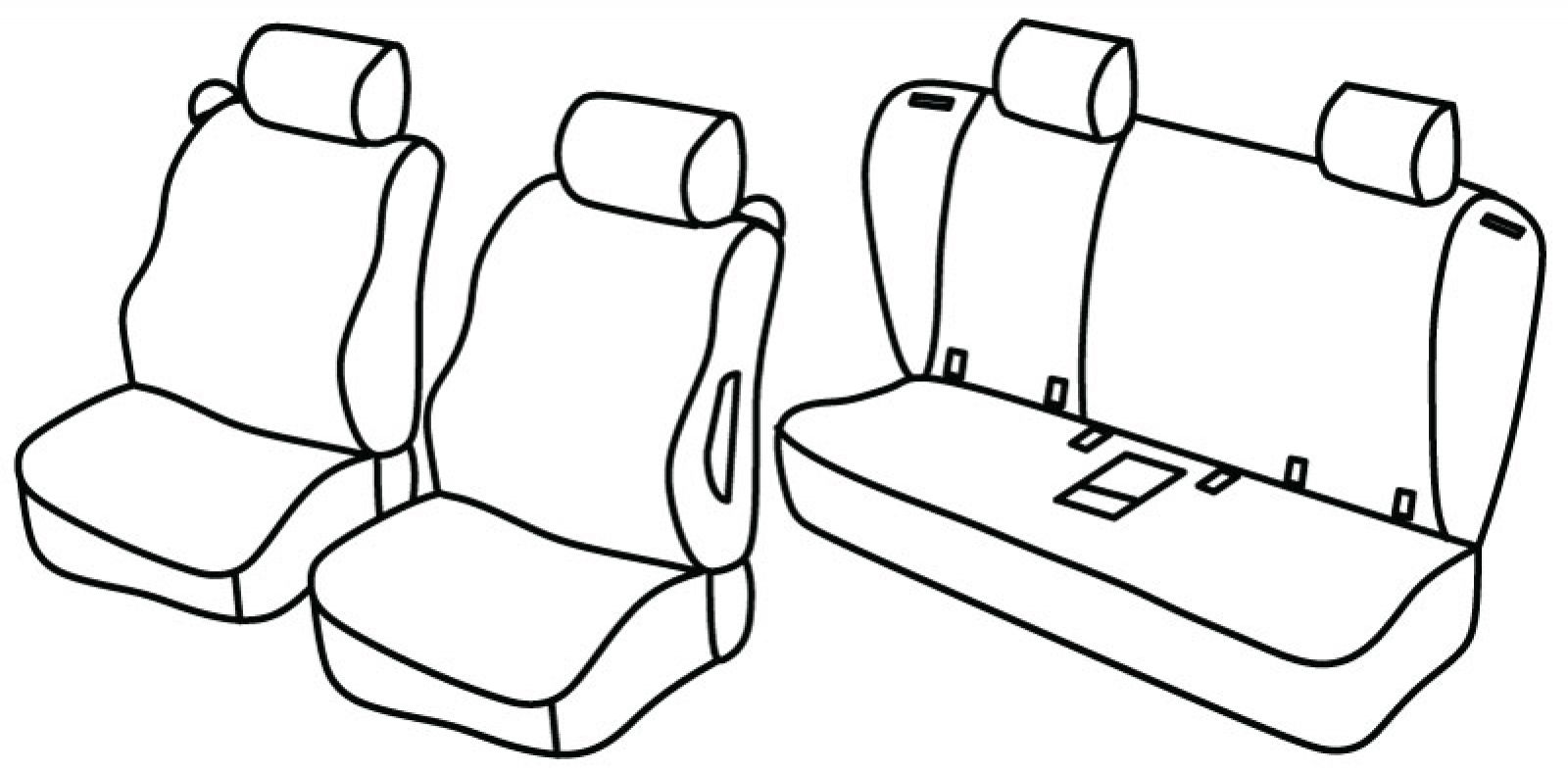 prednja sjedala obična, plastični airbag, poleđina prednjih naslona od plastike, prednji nasloni za glavu su normalni, stražnji naslon djeljiv 1/3+2/3, stražnje sjedalo u komadu, bočni stupići, isofix povezan s presvlakom, stražnji nasloni glave mogu biti u dvije različite veličine (obje verzije su uključene u komplet), u stražnjem sjedalu nalazi se prostor za odlaganje