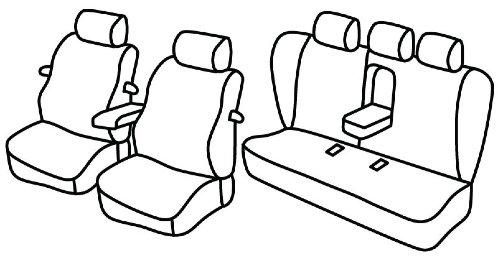 prednja sjedala obična, ručice sa unutarnje i vanjske strane suvozačevog naslona, ručica za preklapanje vozačevog naslona, stražnji naslon djeljiv 1/3+2/3, stražnje sjedalo u komadu, bočni stupići, prednji naslon ruke konzolni (nije vezan za naslon sjedala), stražnji naslon ruke, stražnji nasloni za glavu nisu povezani s naslonom sjedala (učvršćeni su za prtljažni prostor)
