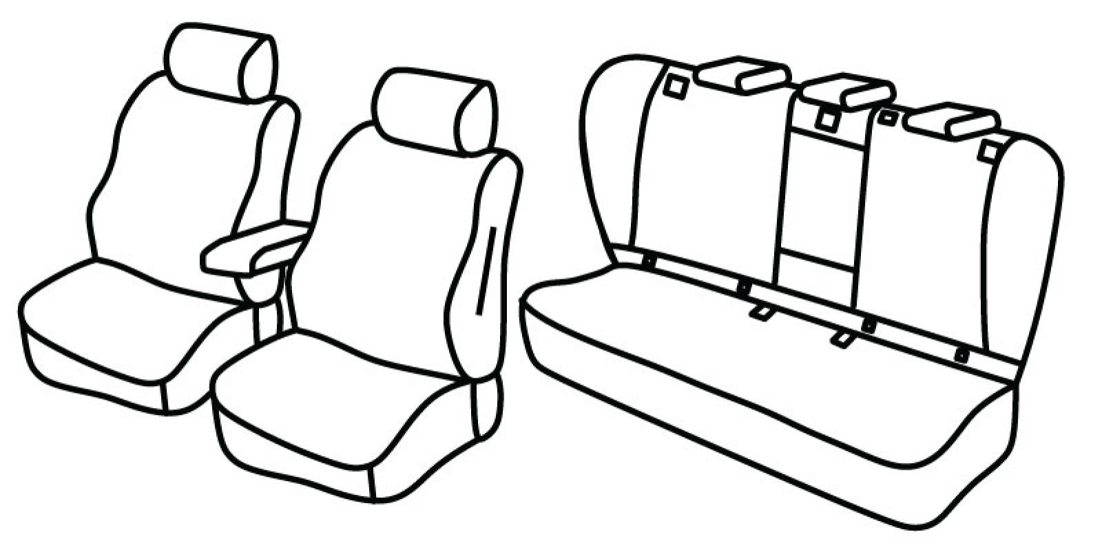 prednja sjedala obična, airbag, prednji nasloni za glavu su normalni, prednji naslon ruke konzolni (nije vezan za naslon sjedala), poleđina prednjih naslona od plastike koja se prekriva presvlakom, stražnji naslon djeljiv 1/3+1/3+1/3, stražnje sjedalo u komadu, bočni stupići, treći (srednji) pojas izlazi iz naslona, stražnji naslon ruke, isofix povezan s presvlakom, stražnji nasloni za glavu obični