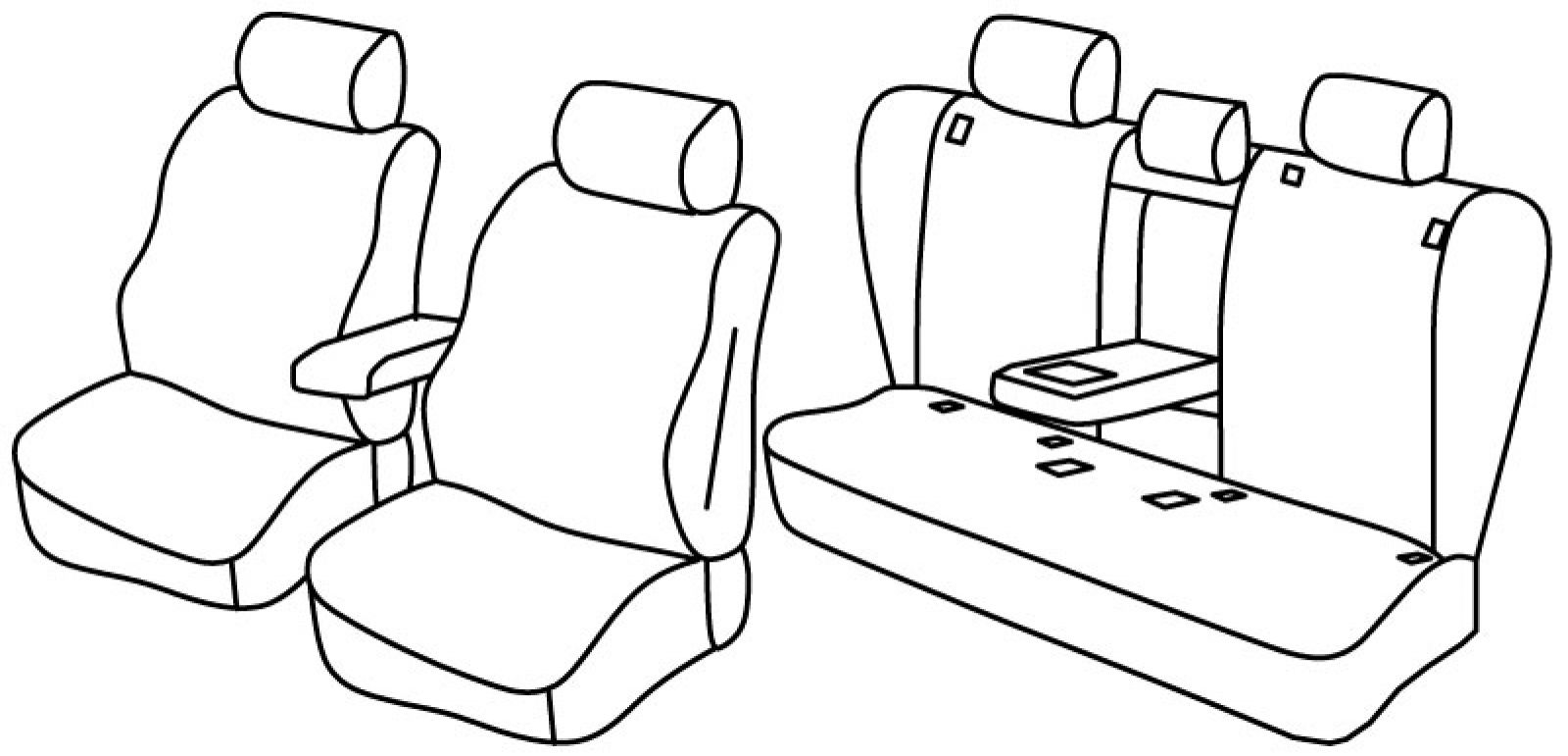prednja sjedala obična, airbag, prednji nasloni za glavu su normalni, prednji naslon ruke konzolni (nije vezan za naslon sjedala), stražnji naslon djeljiv 1/3+1/3+1/3, stražnje sjedalo u komadu, stražnji naslon ruke, u stražnjem naslonu za ruku integrirani držač za čaše (kvadratni), u srednjem stražnjem naslonu nalazi se otvor za skije, bočni stupići, isofix povezan s presvlakom, treći (srednji) pojas izlazi iz naslona, stražnji nasloni za glavu su normalni (2+1)