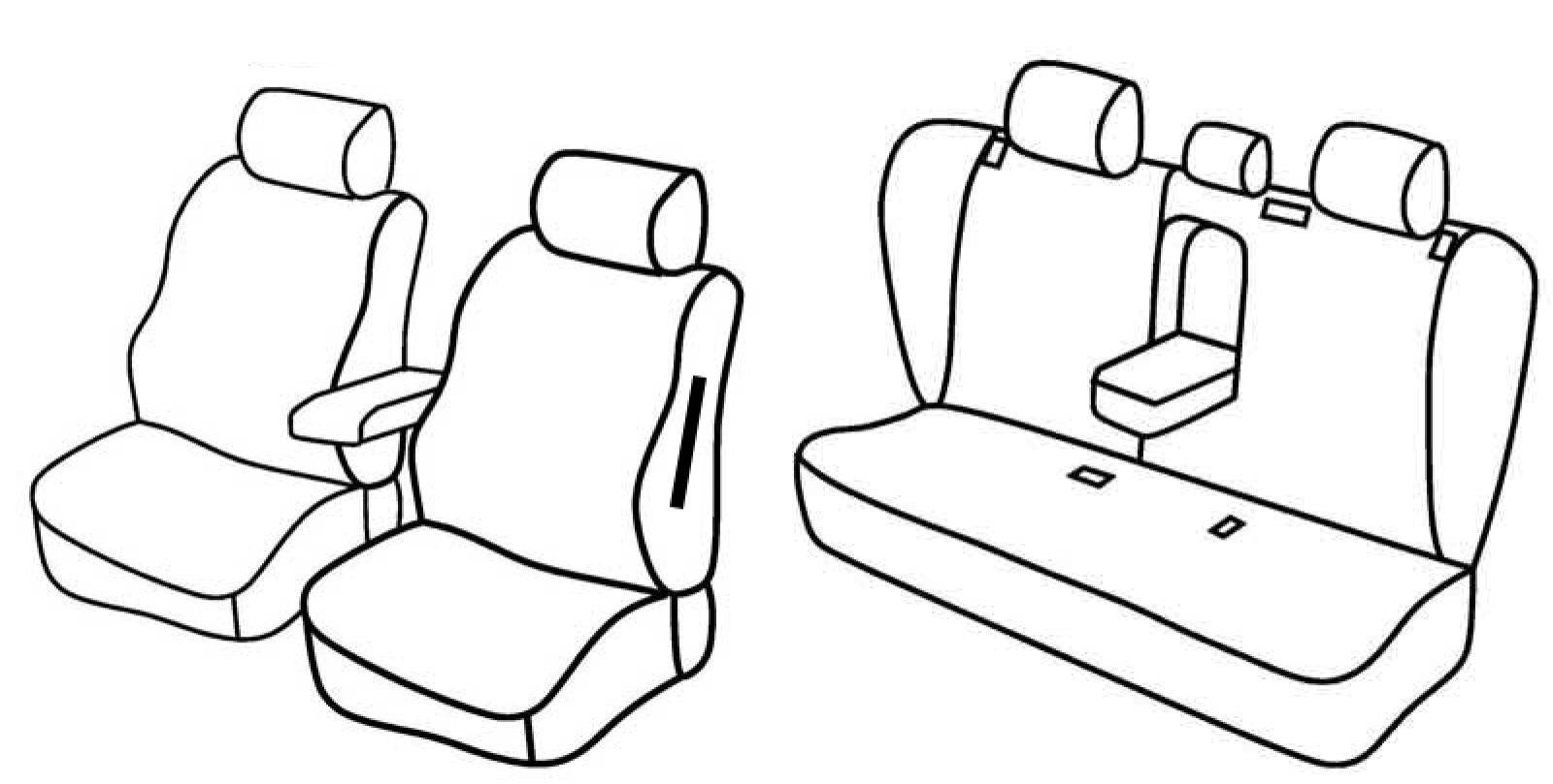 prednji i stražnji srednji nasloni za glavu su aktivni, poleđina prednjih naslona od plastike, stražnji naslon djeljiv 1/3+2/3, stražnji naslon ruke, bočni stupići, treći (srednji) pojas izlazi iz naslona, prednji naslon ruke, airbag