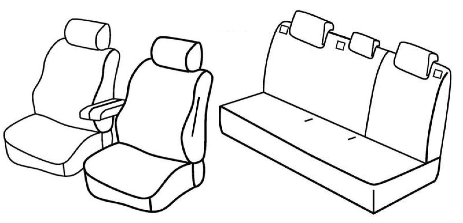 prednja sjedala obična, plastični airbag, 2 prednja naslona ruke vezana za naslone sjedala, prednji nasloni za glavu su normalni, stražnji naslon djeljiv 2/3+1/3, stražnje sjedalo u komadu, treći (srednji) pojas izlazi iz naslona, stražnji nasloni za glavu su utopni (2+1)