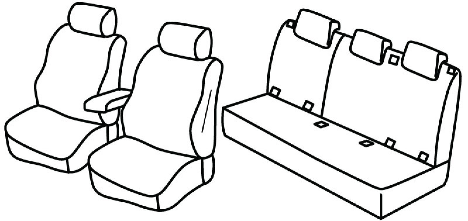 prednja sjedala obična, airbag, prednji nasloni za glavu su normalni, treći (srednji) pojas izlazi iz naslona, isofix povezan s presvlakom, stražnji nasloni za glavu su utopni (2+1), stražnje sjedalo u komadu, stražnji naslon djeljiv 1/3+2/3, prednji naslon ruke konzolni (nije vezan za naslon sjedala)