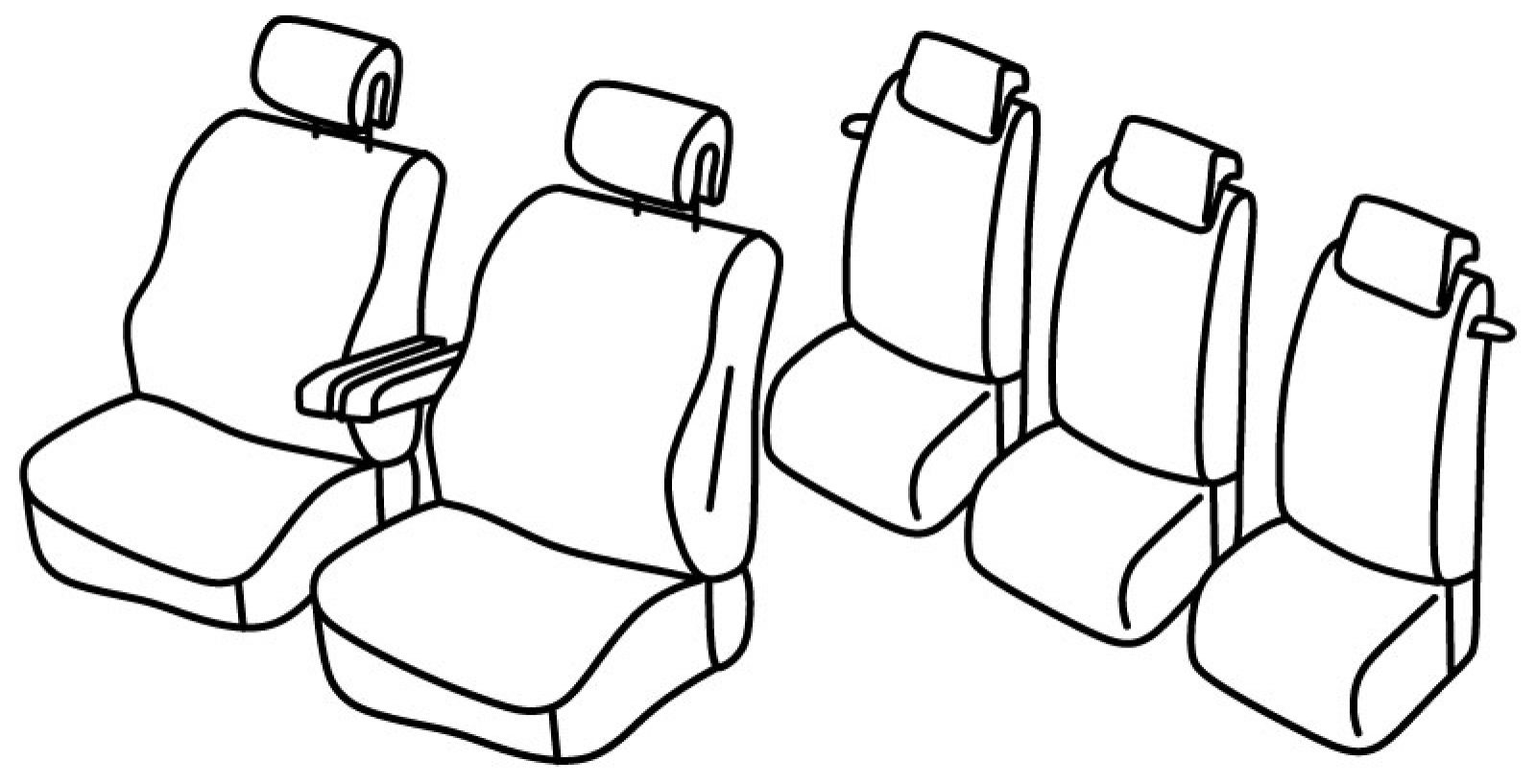 2 od 3 reda sjedala, prednji nasloni profilirani, prednji nasloni za glavu su rasklopni, stražnji nasloni za glavu su utopni, 2 prednja naslona ruke vezana za naslone sjedala, airbag, poleđina prednjih naslona od plastike, 3 zasebna sjedala iza, ručice za preklapanje naslona u 2 redu
