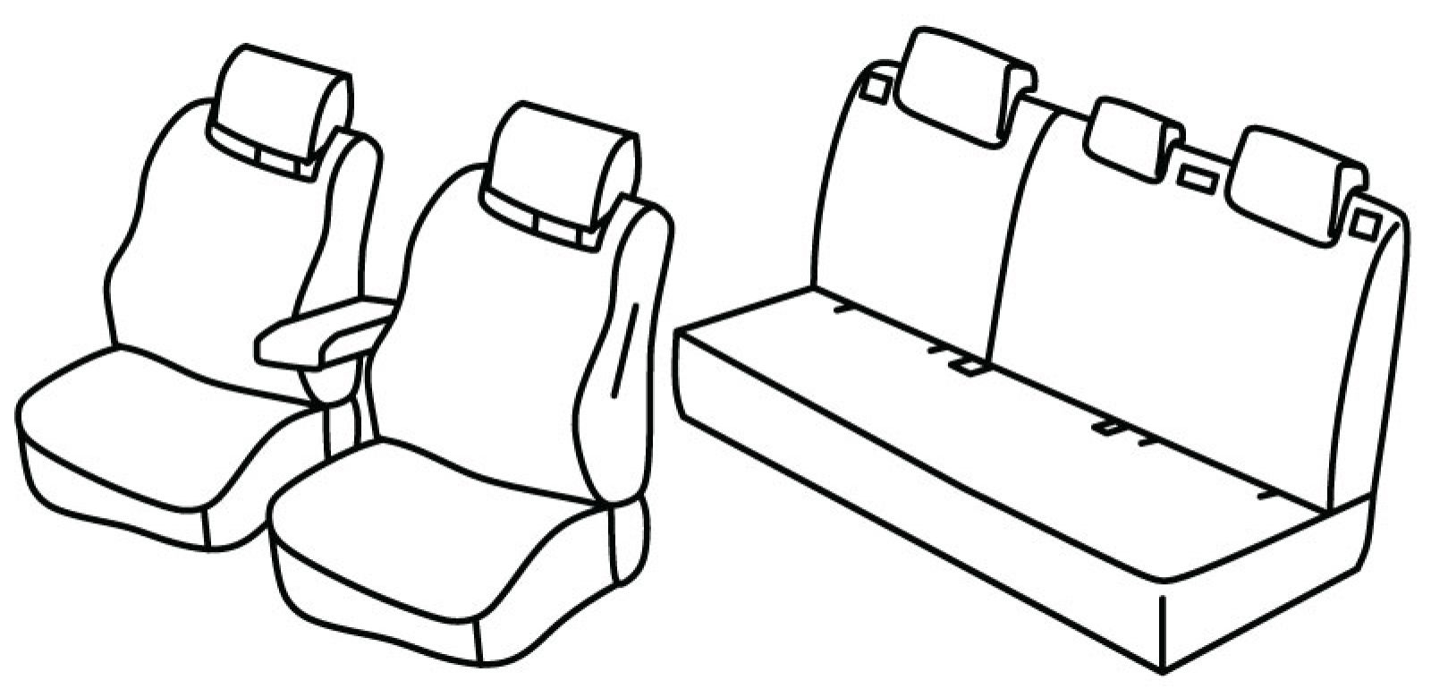 prednja sjedala obična, prednji naslon ruke konzolni (nije vezan za naslon sjedala), prednji nasloni za glavu su normalni, stražnji naslon djeljiv 1/3+2/3, stražnje sjedalo u komadu, treći (srednji) pojas izlazi iz naslona, stražnji nasloni za glavu su utopni (2+1), isofix povezan s presvlakom, airbag