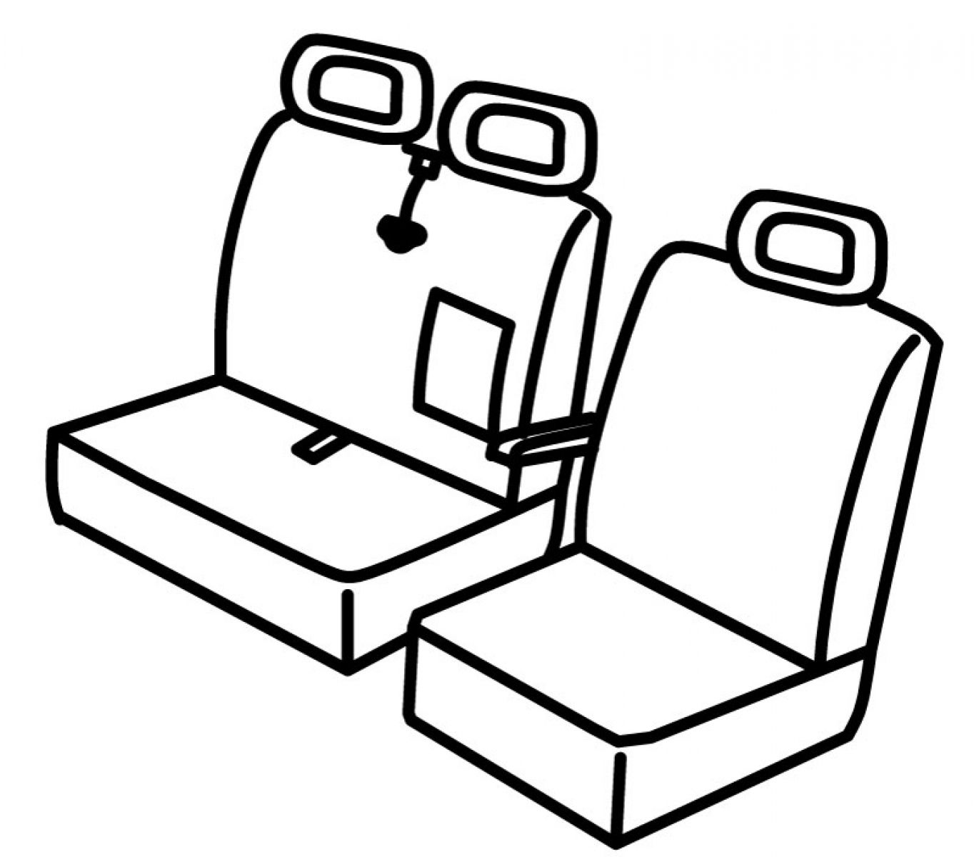 dostavno vozilo, 1+2, prednji naslon ruke vezan za naslon vozača, naslon srednjeg sjedala ima ugrađen naslon za ruku, pojas na sredini gornjeg dijela suvozačevog naslona, svi nasloni za glavu su šuplji ali potpuno prekriveni presvlakom