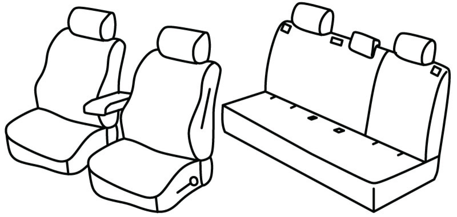 prednja sjedala obična,airbag, prednji naslon ruke konzolni (nije vezan za naslon sjedala), stražnji naslon djeljiv 2/3+1/3, stražnje sjedalo u komadu, stražnji nasloni za glavu 2 normalna + 1 srednji utopni, treći (srednji) pojas izlazi iz naslona, isofix povezan s presvlakom, sjedalo vozača ima ručicu sa strane prema vratima