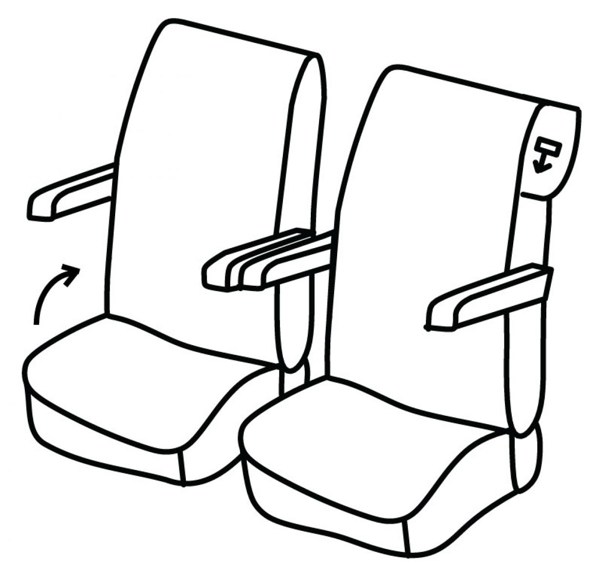 prednja sjedala avionska, vozačev pojas izlazi iz naslona, 4 prednja naslona ruke vezana za naslone sjedala, vozačev i suvozačev naslon nisu istih dimenzija, preklopno suvozačevo sjedalo