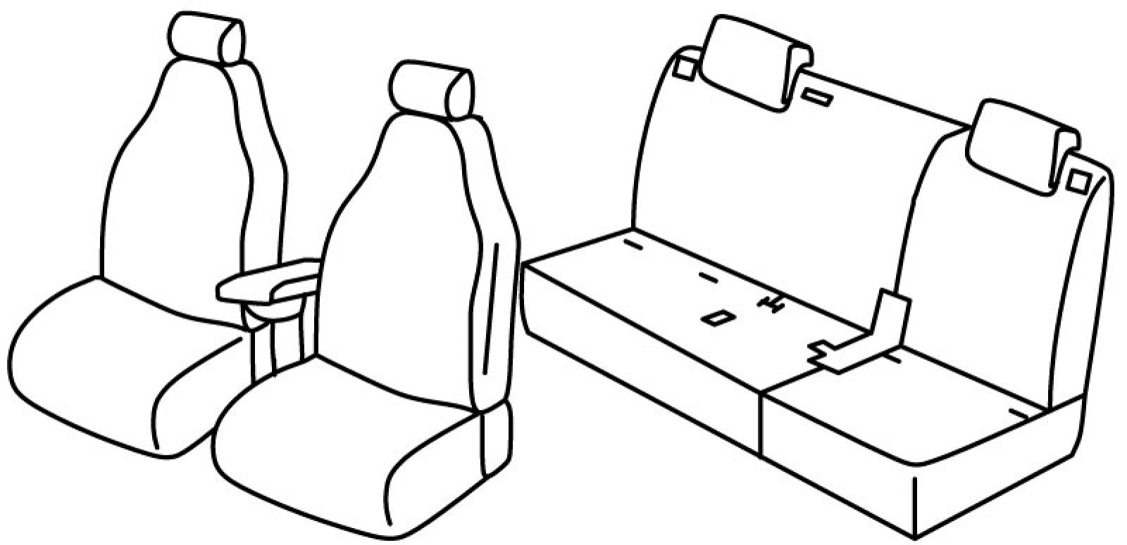 na poleđini prednjih naslona su plastični sklopivi stolići, poleđina prednjih naslona od plastike, airbag, prednji naslon ruke vezan za naslon vozača, stražnji naslon i sjedalo djeljivi 2/3+1/3, treći (srednji) pojas izlazi iz naslona, isofix povezan s presvlakom, 4 naslona za glavu