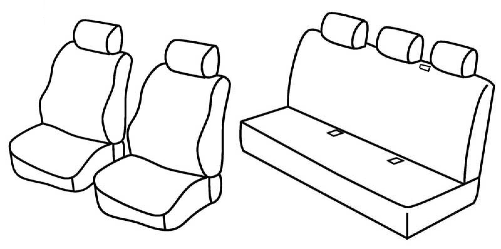 prednji nasloni za glavu su aktivni, stražnji naslon i sjedalo u komadu, treći (srednji) pojas izlazi iz naslona