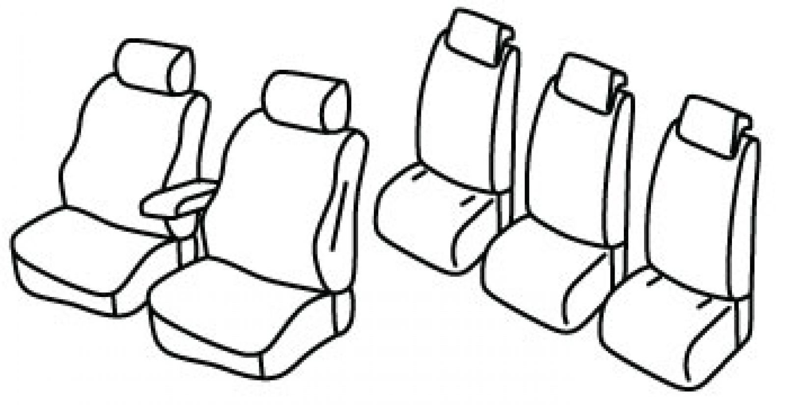 predna sjedala obična, prednji naslon ruke vezan za naslon vozača (nema presvlaku) ili konzolni (obje opcije uključene u set), 3 zasebna sjedala iza, isofix povezan s presvlakom, airbag, stražnji pojasevi izlaze iz gepeka, držač pojasa na stražnjim naslonima