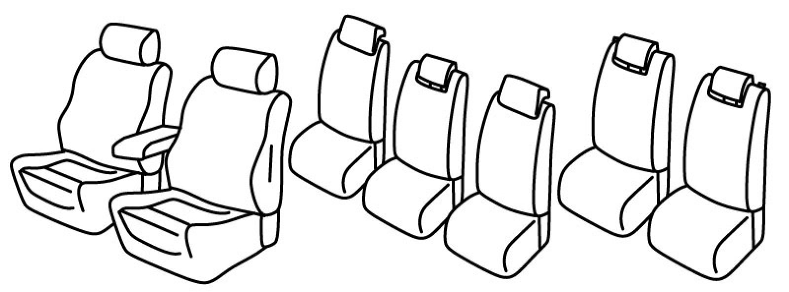 prednja sjedala profilirana, airbag, 3 zasebna sjedala iza, 2. red: stražnji srednji naslon glave ulazi u naslon sjedala, prednji naslon ruke, 3. red: stražnji nasloni za glavu ulaze u naslon sjedala, na poleđini prednjih naslona su plastični sklopivi stolići