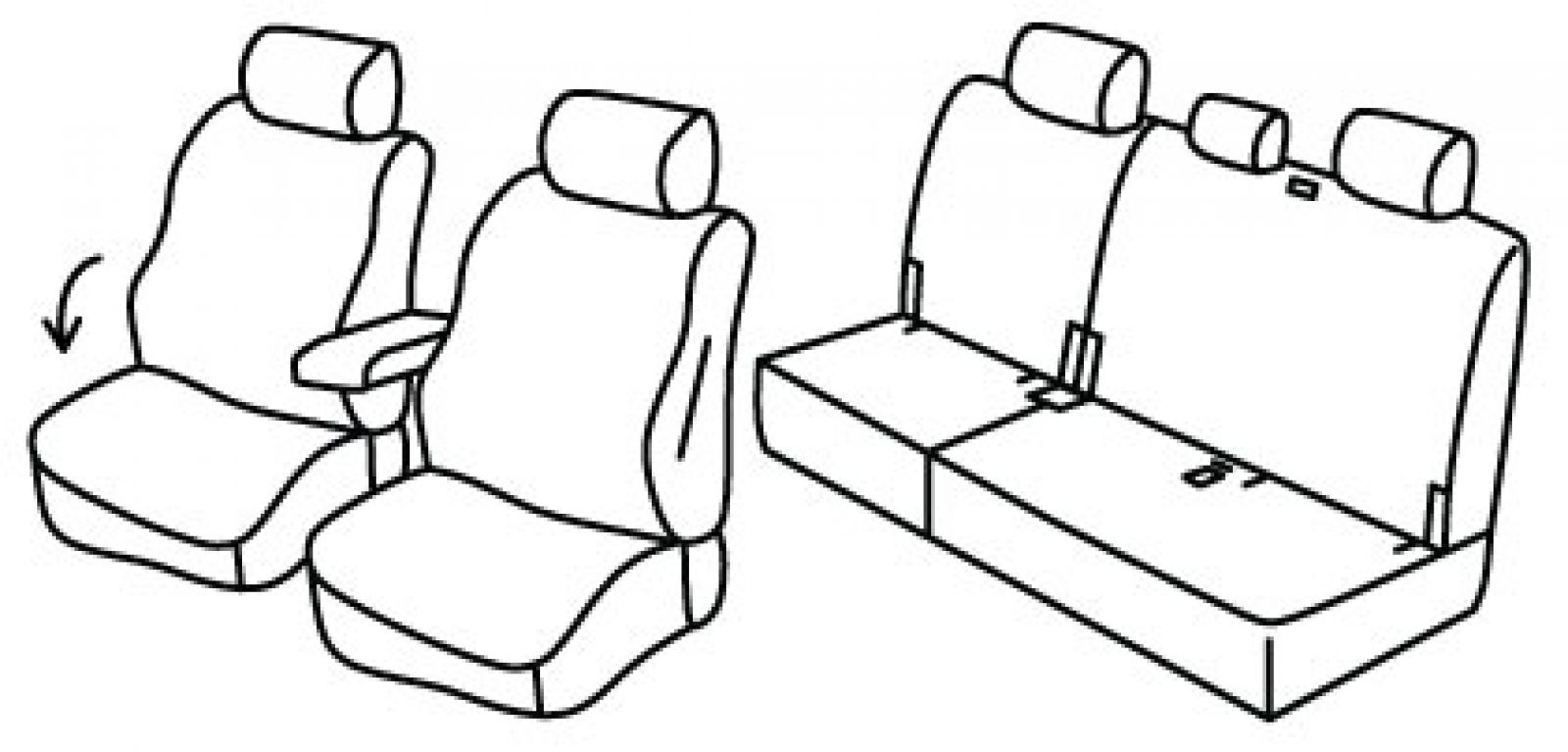 prednja sjedala obična, prednji nasloni za glavu su aktivni, prednji naslon ruke konzolni (nije vezan za naslon sjedala), 3 airbaga (sa vanjske strane prednjih naslona i na vozačevom naslonu sa unutarnje strane), suvozačev naslon se preklapa, na poleđini prednjih naslona su plastični sklopivi stolići, stražnji naslon i sjedalo djeljivi 1/3+2/3, isofix, stražnji nasloni za glavu su normalni (2+1)