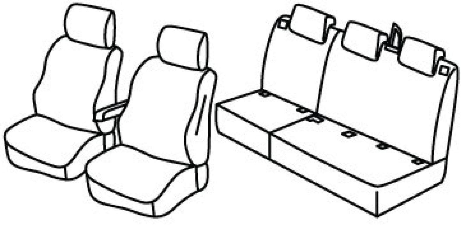 prednja sjedala obična, prednji naslon ruke vezan za naslon vozača, 3 airbaga (sa vanjske strane prednjih naslona i na vozačevom naslonu sa unutarnje strane), stražnji naslon i sjedalo djeljivi 1/3+2/3, isofix povezan s presvlakom, ručice za preklapanje naslona u 2 redu, stražnji nasloni za glavu su utopni