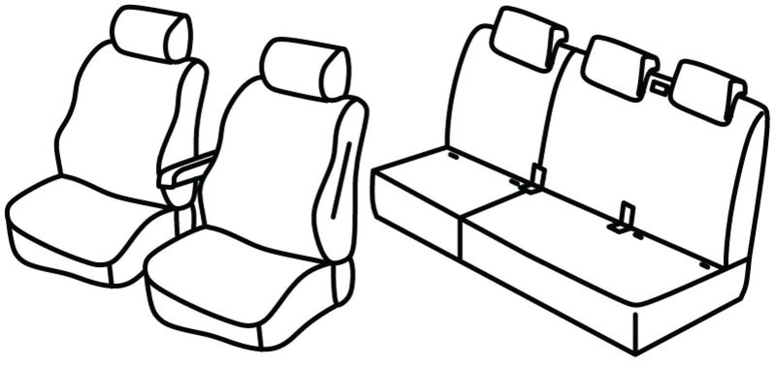 prednja sjedala obična, airbag, prednji nasloni za glavu su normalni, prednji naslon ruke vezan za naslon vozača, stražnji naslon i sjedalo djeljivi 1/3+2/3, isofix povezan s presvlakom, stražnji nasloni za glavu su utopni, treći (srednji) pojas izlazi iz naslona