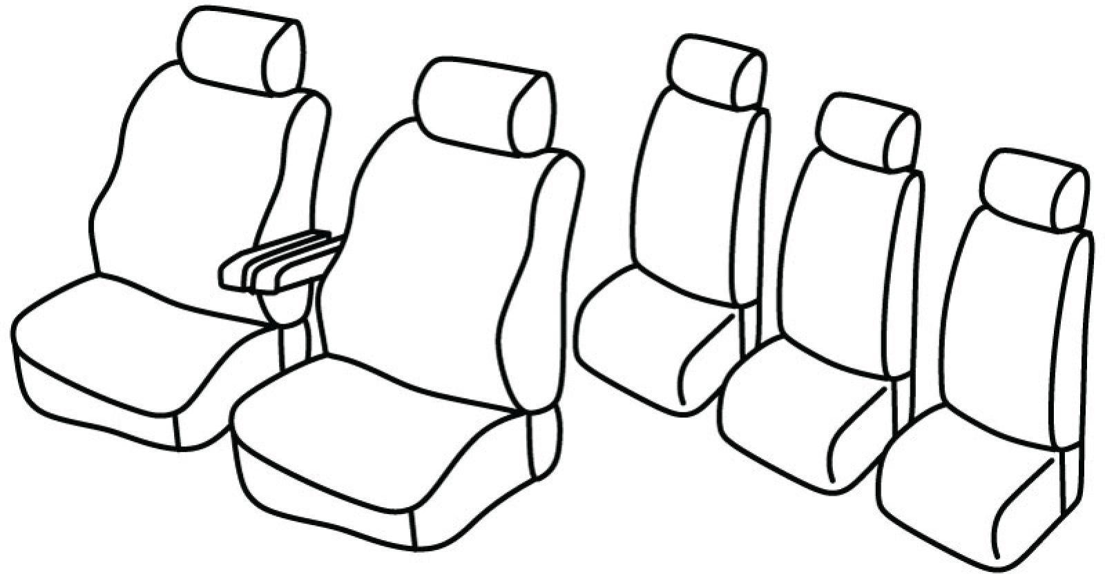 prednja sjedala obična,3 zasebna sjedala iza,2 prednja naslona ruke vezana za naslone sjedala, poleđina stražnjih naslona od plastike