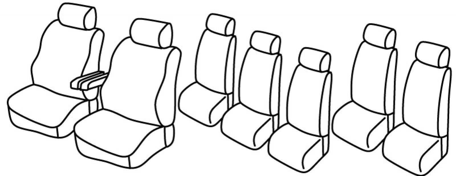 prednja sjedala obična, 3 zasebna sjedala iza, 2 prednja naslona ruke vezana za naslone sjedala,poleđina stražnjih naslona od plastike, 3 reda sjedala