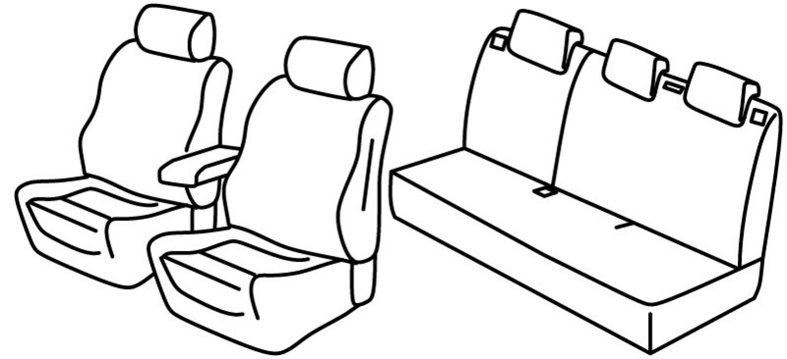 prednja sjedala (sjedeći dio) profilirana, airbag, prednji naslon ruke konzolni (nije vezan za naslon sjedala), stražnji naslon djeljiv 1/3+2/3, stražnje sjedalo, treći (srednji) pojas izlazi iz naslona, stražnje sjedalo u komadu, isofix nije povezan s presvlakom